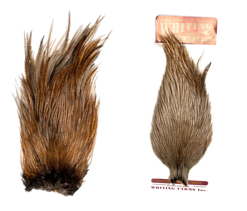 US hackle supplier Whiting has produced some excellent Coq de Leon feathers. They aren't quite like the Spanish originals, but have plenty of qualities and many large and useful feathers. It's a saddle left and a cape right.