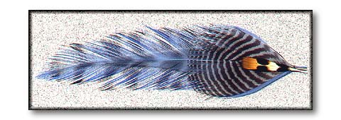 STEP 4: In this step, the wing/shoulder/cheek assemblies are constructed. After selecting an acceptable pair of grizzly and light blue saddle hackles, determine a left and a right hackle from both types. Strip the individual hackle fibers off each hackle until they are the proper length. Apply a light line of thick head cement along each grizzly hackle stem, from the base to slightly less than 1/3 the length. Align the light blue hackles on top of these and gently press them flush with the grizzly hackles. Allow the cement to dry a bit, and select and prepare the shoulder feathers. These feathers should be 1/3 the length of the wing, and slightly wider than the saddle hackles. Cement these onto the hackle pairs in the same manner as above, but use a line of cement that is only as long as the jungle cock that will cover it. This is important because too much cement will ruin the appearance of the completed streamer. The final step of wing assembly is to cement the jungle cock nails to each wing. When the cement has dried sufficiently, proceed to the next step. Some streamer tyers find it desireable to only cement the wing hackles together, and apply the shoulders and cheeks individually after the wings are tied in. This approach allows you to make minor adjustments to cover unsightly gaps between the wing assemblies.